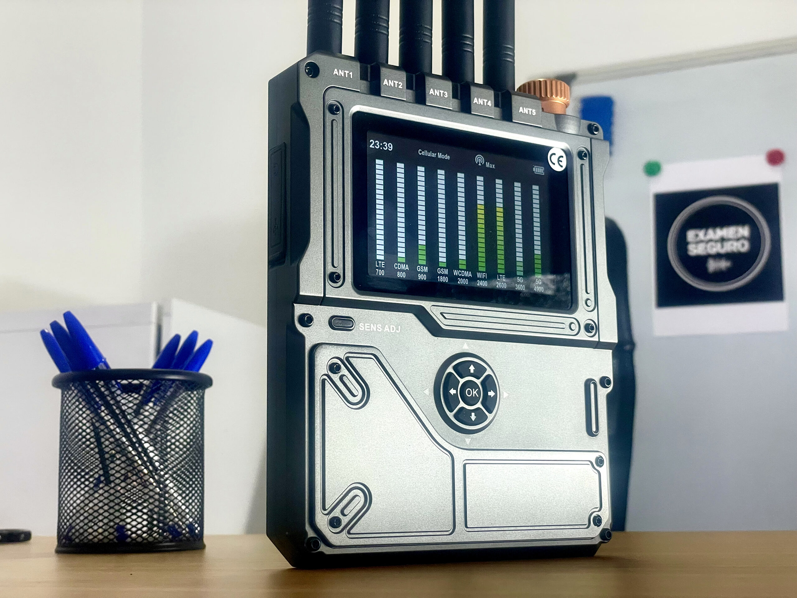 Pinganillos, móviles o cámaras necesitan transmitir para funcionar. Esas transmisiones usan frecuencias. Esas frecuencias dejan un rastro. Nuestros detectores lo identifican y encontramos los equipos prohibidos. ¿Se arriesgaría a tener un equipo transmitiendo en un aula que dispone de detectores de frecuencias?